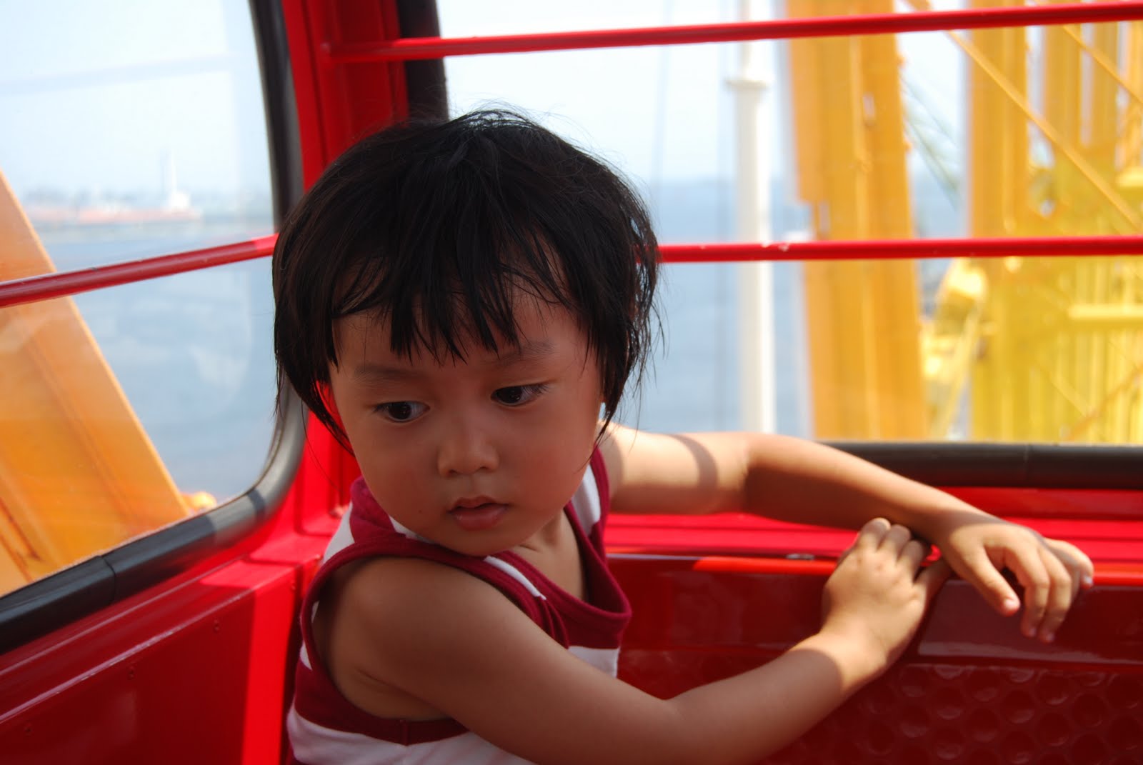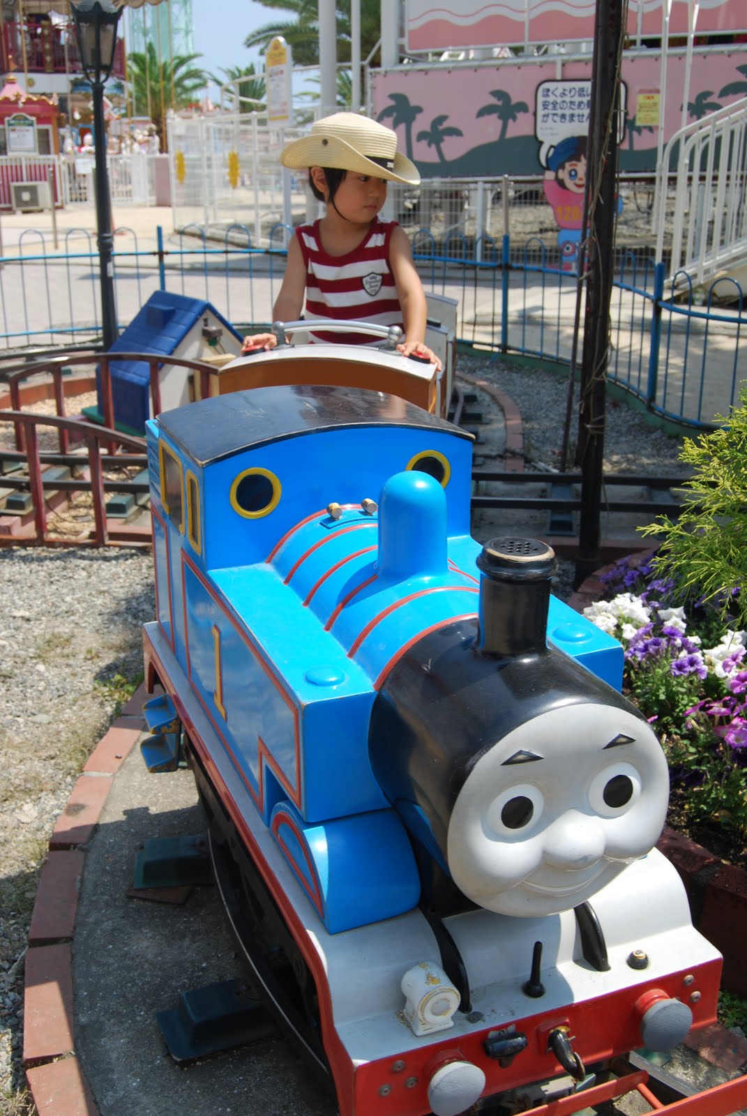 翌日はMOSAICへ、子供が観覧車に乗りたいというので遊園地に行ったのですが、その前にトーマスのミニ汽車を見つけてしまい、観覧車どころではなくトーマスに首ったけ、一応 両方に乗りましたが、トーマスのほうがはるかにお気に入りのようです。見てください得意げな顔を・・・ 観覧車は暑くて子供もぐったり。妻は暑いのを避けて、一人で隣接する阪急百貨店で買い物へ、のんきなものです。
